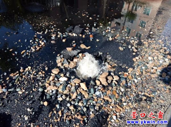 營(yíng)口市一條小馬路邊突噴十米水柱