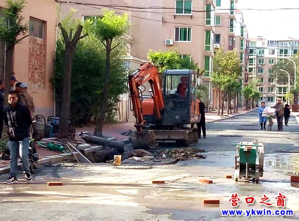 營口市:小馬路突噴水柱 軋道機承擔責任