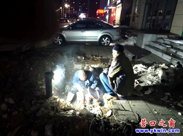 營(yíng)口:兩名供暖搶修工人挑燈夜戰(zhàn)