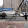 營口市街邊傾斜的通訊線桿扶正了