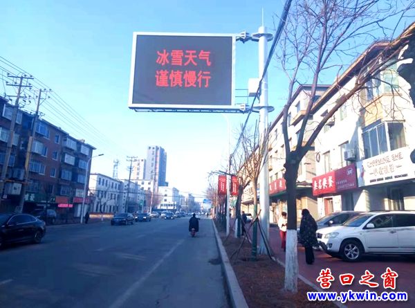 (營(yíng)口之窗網(wǎng)訊 胡 然)12月7日天氣晴朗,從營(yíng)口市渤海大街穿過(guò)在盼盼路路口東邊看見(jiàn)路邊電子顯示屏上出現(xiàn)了“冰雪天氣 謹(jǐn)慎慢行”的警示語(yǔ),12月8日陽(yáng)光普照,在營(yíng)口市新興大街盼盼路路口東邊又發(fā)現(xiàn)路邊電子顯示屏上打出了“冰雪天氣 謹(jǐn)慎慢行”。可這兩天這兩條街路上沒(méi)有一丁點(diǎn)冰和雪。