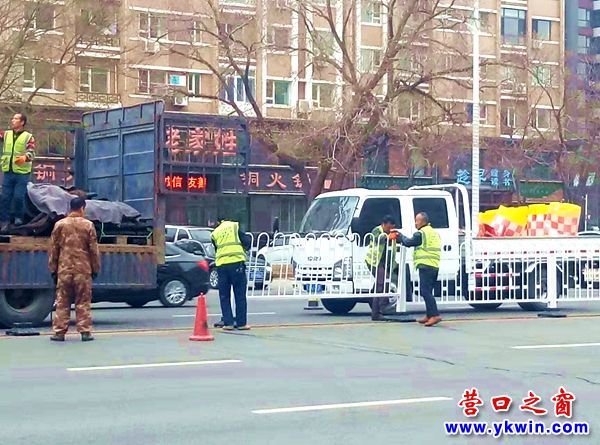 (營(yíng)口之窗網(wǎng)訊 胡 然)12月9日,一支安裝隊(duì)在營(yíng)口市渤海大街中央安裝新式隔離護(hù)欄將該街一分為二。與以前的隔離護(hù)欄不同的是,這次更新的隔離護(hù)欄沒(méi)有廣告,不遮擋視線,消除了安全隱患。