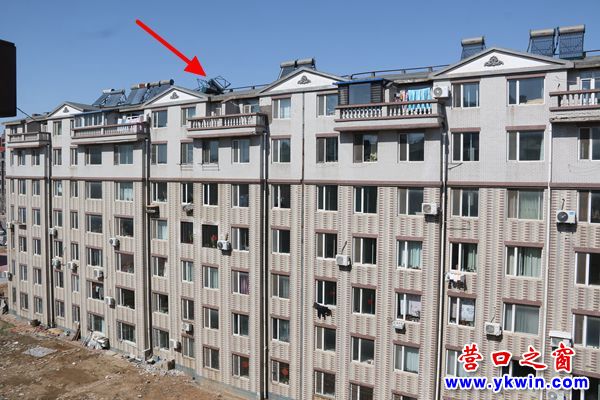 (營口之窗網(wǎng)訊 李凱)昨天發(fā)現(xiàn),營口市中天新城小區(qū)9甲樓的樓頂有一太陽能被風吹倒,隨時可能發(fā)生墜落,這懸在頭頂上的危險不容忽視,為確保自身安全,請大家遠離該區(qū)域,同時希望能有人處理。