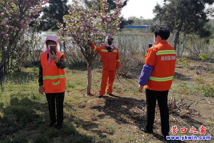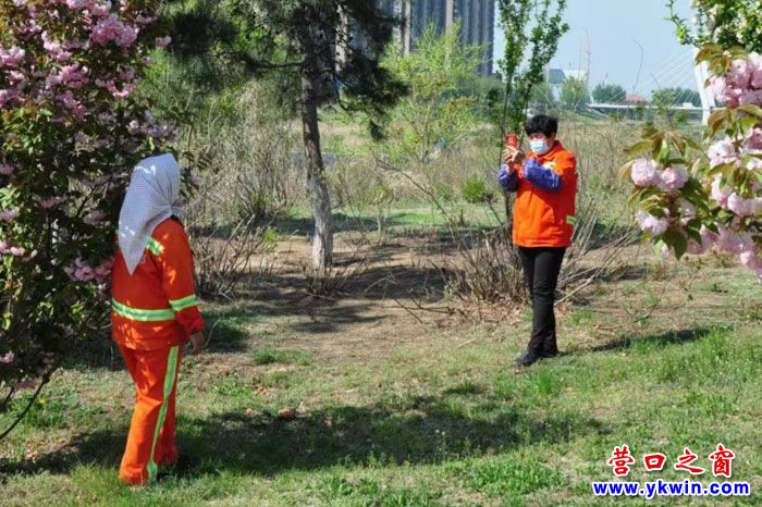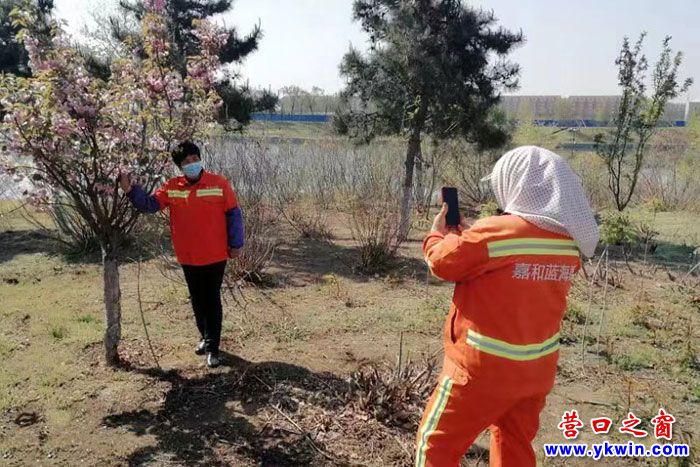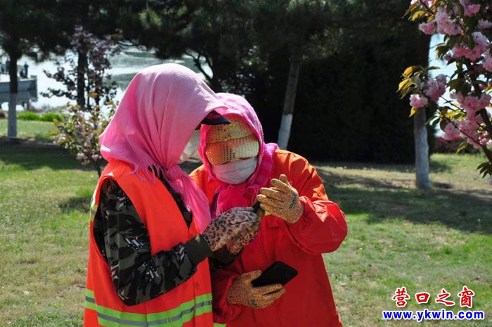 今天上午,在營(yíng)口熊岳河公園,一組環(huán)衛(wèi)女工正在拍照喜迎五一勞動(dòng)節(jié)??吹剿齻冃腋5臍g樂(lè),想到疫情期間是她們?cè)跒槲覀兎?wù)。感激之下,征得同意后記錄了美麗的場(chǎng)景。