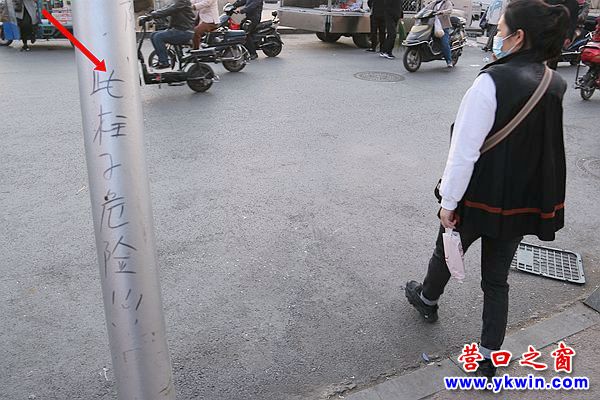 (營口之窗網(wǎng)訊 李凱)昨天發(fā)現(xiàn),營口市西市區(qū)新興大街通惠門市場西側(cè)的一個路牌“掉頭”,剩下個光禿禿的金屬柱歪斜在路邊,有人在柱上寫著“此柱子危險?。?!”,實在是有礙觀瞻。