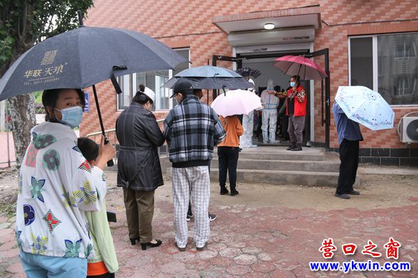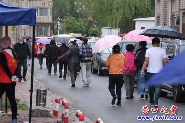 5月26日,營(yíng)口迎來(lái)降雨天氣,營(yíng)口市西市區(qū)西市場(chǎng)社區(qū)啟動(dòng)第十一輪全員核酸檢測(cè),雖然下著雨,但現(xiàn)場(chǎng)秩序井然。