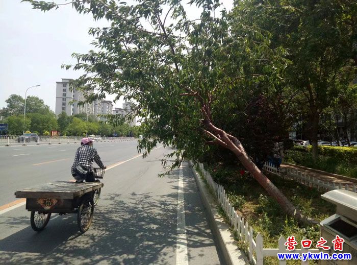 (營口之窗“圖說營口”)營口市渤海大街邊歪樹已拔出