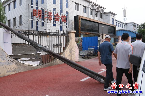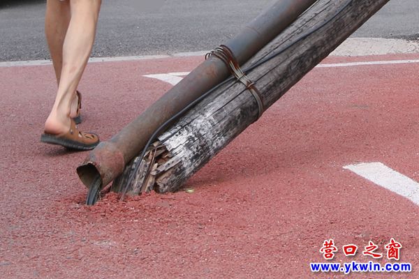 (營口之窗網(wǎng)訊 李凱)昨天,在營口市站前區(qū)新興大街大潤發(fā)超市西行約200米的馬路南側(cè)某會館門前看到,一線桿砸在圍欄且橫在便道上,底部斷裂處露出線纜,“這根線桿倒了足足有一個月多了,遲遲不見有人來修理。”附近商戶說,好在線桿是沿著南北方向倒伏,并未對附近交通造成影響。