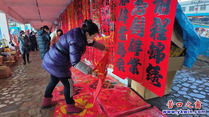 今天,鲅魚圈世紀廣場和幾條主干道正在布置節(jié)日亮化裝飾。市場上,市民買年貨選對聯(lián)絡(luò)繹不絕,年味十足。