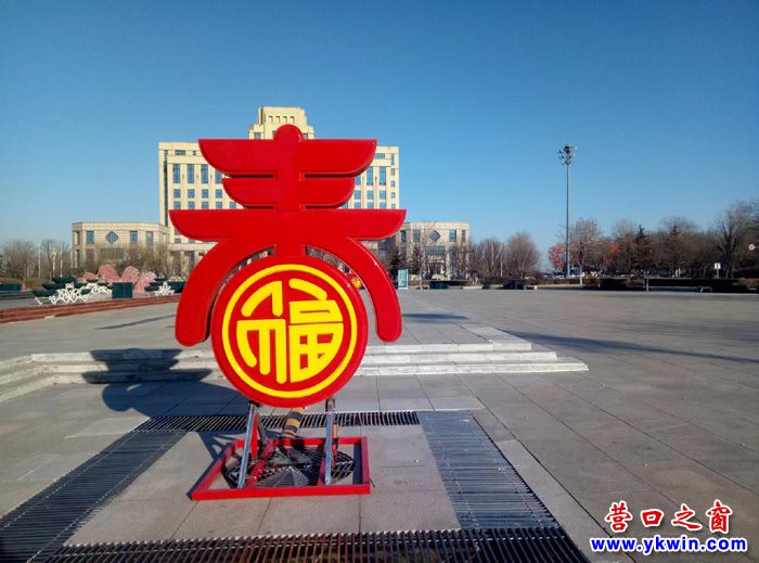 1月16日,營口的年味已經(jīng)很濃。來到遼河廣場,見到這里迎春的景觀比哪年都節(jié)儉,只有幾個春、幾個福、幾片紅葉、幾個五星和“新春快樂”幾個大字。