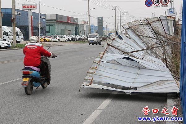(營口之窗網(wǎng)訊 李凱)風(fēng)大!營口道路圍欄被“推倒” 通行請(qǐng)小心