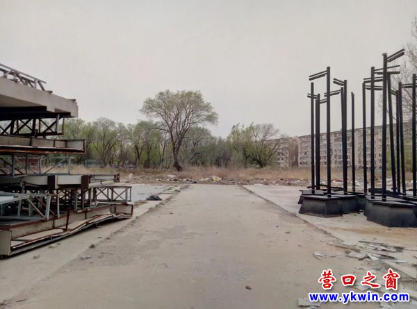 4月13日,營(yíng)口的陣風(fēng)有點(diǎn)狂。經(jīng)過營(yíng)口市東風(fēng)路發(fā)現(xiàn)人民公園北100米處西邊的建筑圍擋中的兩扇大門被風(fēng)吹倒了,里面的廢墟一覽無余。