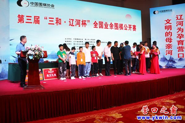 營(yíng)口之窗網(wǎng)訊(李凱 攝影報(bào)道)第三屆“三和·遼河杯”全國(guó)業(yè)余圍棋公開(kāi)賽于5月22日在營(yíng)口紅運(yùn)大飯店完成全部比賽日程,來(lái)自全國(guó)16省48市214名棋手經(jīng)過(guò)激烈的對(duì)弈角逐,最終,公開(kāi)組冠軍被營(yíng)口榮源三和隊(duì)棋手王異新以全勝戰(zhàn)績(jī)摘得,捧得3萬(wàn)大獎(jiǎng)!沈陽(yáng)天狐隊(duì)棋手吳辰爵和赤峰棋協(xié)隊(duì)劉秋分獲二、三名。