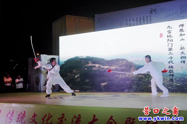 (營口之窗網訊 李凱 )日前,“道傳武術·九宮純陽門傳統(tǒng)文化交流大會暨傳統(tǒng)武術展演”活動在營口市鲅魚圈區(qū)萬達廣場舉辦。營口市武術協(xié)會副主席龐國華、李秋英、楊林、趙輝、蘇鳳艷、閆伍強,鲅魚圈九宮純陽門基地負責人項兆權,鲅魚圈太極拳協(xié)會主席張信,鲅魚圈陳氏太極拳研究會主席惠懷君,湖南岳陽國家級辭賦家、作家、書法家,全國征文金獎獲得者周志宏,廣東省東莞寮步武術協(xié)會葉鳳蘭,道門玄裔弟子張蒙寧(法名),三劍(號)吉塵,蓋州市震辰武館館主姚明以及來自廣東、湖南、江蘇等地的九宮純陽門基地負責人出席本次大會。
