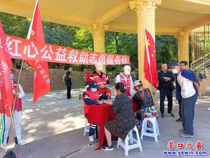 十月一日國慶節(jié),紅心公益救助志愿服務隊的志愿者們在鲅魚圈碧霞山世紀門給來往的居民和游客發(fā)放小國旗傳遞愛國情懷,免費測血壓,受到大家的歡迎和感謝。