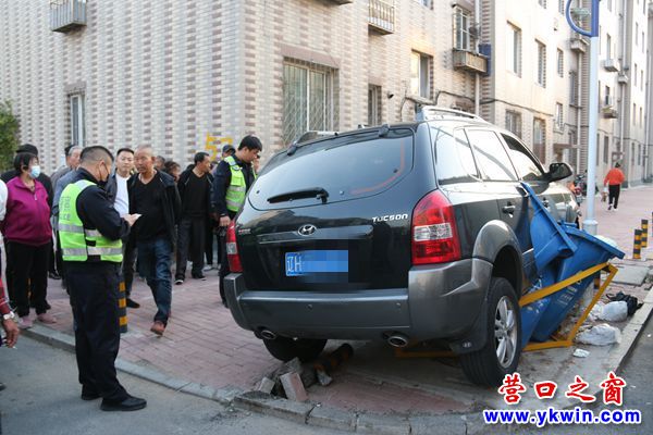 嚇人!營口某小區(qū)一私家車沖上垃圾箱