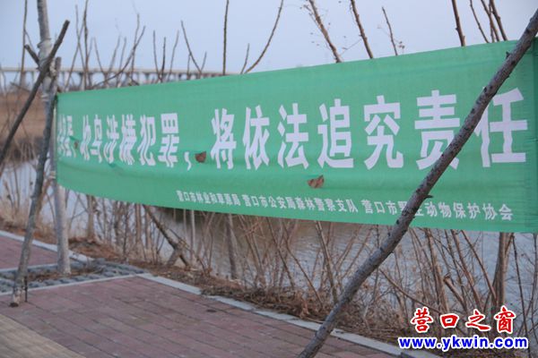在營口市區(qū)西部,丹頂鶴棲息的這一片區(qū)域,也懸掛了很多橫幅,內(nèi)容包括“禁止投食、大聲喧嘩”“禁止無人機跟拍丹頂鶴”,等等。據(jù)了解,市林草局制作了30多幅類似橫幅,向市民宣傳文明觀鳥理念。