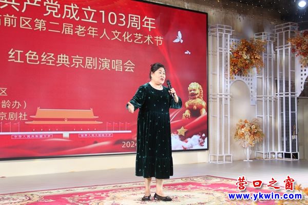 營(yíng)口之窗網(wǎng)訊(李凱 攝影報(bào)道)為慶祝中國(guó)共產(chǎn)黨成立103周年,弘揚(yáng)中華優(yōu)秀傳統(tǒng)文化,7月1日,由營(yíng)口市站前區(qū)疾控中心(老齡辦)主辦,營(yíng)口心海京劇社承辦的“中國(guó)共產(chǎn)黨成立103周年 營(yíng)口市站前區(qū)第二屆老年人文化藝術(shù)節(jié) 紅色經(jīng)典京劇演唱會(huì)”在市禧悅宴會(huì)酒店舉行。