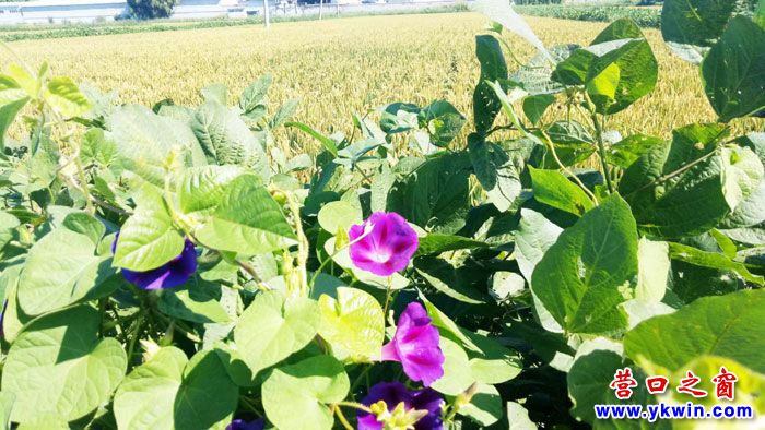 臨別前,在稻田邊看到很多盛開的牽牛花,它們似乎正用鮮艷喇叭把豐收的喜訊傳送!