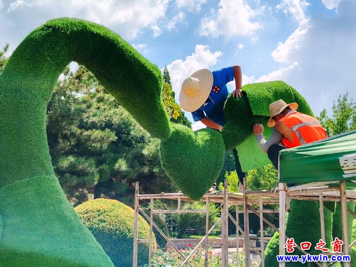 經(jīng)過五六天的裁剪和縫制,8月12日,兩名園林工人終于在國慶節(jié)前50天,給營口市人民公園西門口一對灰頭土臉的“天鵝”換上了新裝。這是該園喜迎國慶的第一個舉動。