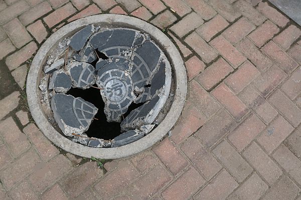 (營(yíng)口之窗“圖說營(yíng)口”)營(yíng)口站前區(qū):井蓋破損超一周 行人通行存隱患