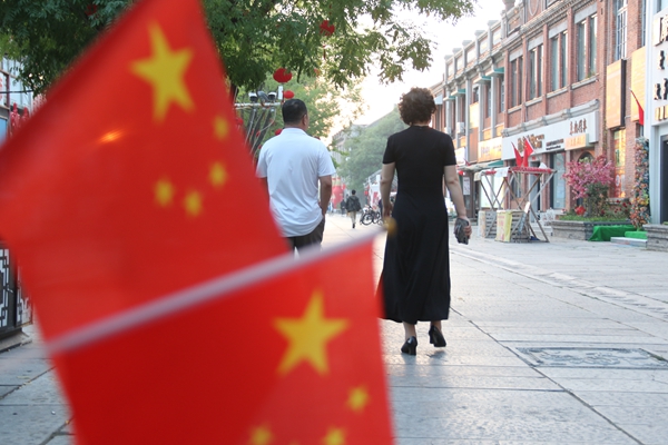 (營(yíng)口之窗網(wǎng)訊 李凱攝影報(bào)道)“十一”的營(yíng)口遼河老街,像被一層溫柔的紅紗輕輕裹住。不必刻意尋找,那抹國(guó)旗紅早已融進(jìn)老街的每一條脈絡(luò),連風(fēng)都裹著幾分喜慶的暖意。