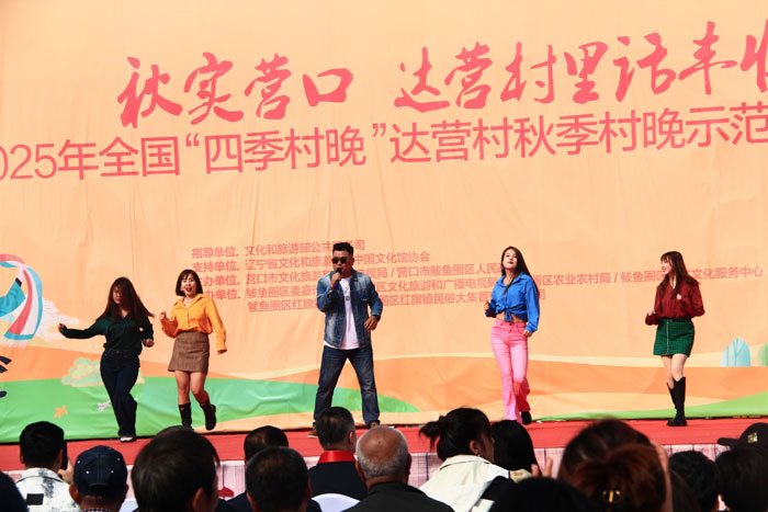 由文化和旅游部公共服務司指導,遼寧省文化和旅游廳、中國文化館協(xié)會支持,營口市文化旅游和廣播電視局、營口市鲅魚圈區(qū)人民政府主辦的《秋實營口 達營村里話豐收——全國“四季村晚”營口鲅魚圈紅旗鎮(zhèn)達營村秋季村晚示范展示活動》于2025年10月15日上午9時在鲅魚圈區(qū)紅旗大集拉開序幕。大集在正常開集基礎上,又新增加了非遺文創(chuàng)展示、村產村宴展銷、村晚文藝演出等活動內容。各部門的有關領導及嘉賓出席了活動。活動于上午11點結束。