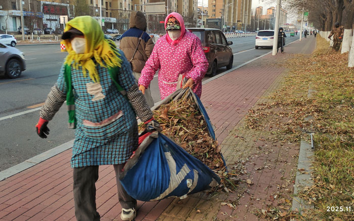 11月26日清晨,營(yíng)口市青花大街南湖段一群綠化養(yǎng)護(hù)工人冒著寒風(fēng)在街道旁綠化帶草地上忙碌著。她們用鈀子將枯黃的落葉聚攏,放入大片布兜著,然后兩人合作兜著落葉,堆放到綠化養(yǎng)護(hù)卡車上。男養(yǎng)護(hù)工則手持工具在梳理草坪。他們的身影在晨光里,為初冬的綠化帶維護(hù)著整潔,用雙手在落葉與泥土間,書寫著城市綠化的日常堅(jiān)守,在寒風(fēng)中書寫著屬于勞動(dòng)者的責(zé)任與擔(dān)當(dāng),是這座城市冬日里最溫暖的風(fēng)景。