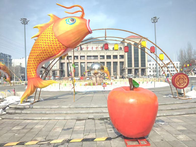 欣賞過(guò)“駿馬”,走進(jìn)希望廣場(chǎng)。這里更讓人眼前一亮。只見(jiàn)四條“鯉魚(yú)”正在跳龍門(mén)。這是對(duì)營(yíng)口城鄉(xiāng)十五五開(kāi)局旗開(kāi)得勝的美好祝愿。