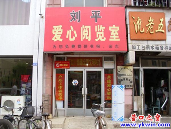 2005年,他們買下了劉平照相館右鄰的一個(gè)90平方米的兩層店鋪,成立了劉平愛心閱覽室。為此,他們自費(fèi)征訂了百余種報(bào)刊,購(gòu)置了書報(bào)架和桌椅等設(shè)施,還招聘了一名女圖書管理員。由于這里遠(yuǎn)離營(yíng)口市圖書館,劉平愛心閱覽室開張后吸引了附近眾多老年讀者前來(lái)閱讀。后來(lái),根據(jù)市民和外來(lái)農(nóng)民工的需求,劉平愛心閱覽室又陸續(xù)增設(shè)了“4050”失業(yè)職工再就業(yè)信息窗、外來(lái)農(nóng)民工郵件接收站、環(huán)衛(wèi)工人休息廳、出租車兌換零鈔點(diǎn)、公共衛(wèi)生間和門前車站擺放長(zhǎng)椅等多種免費(fèi)服務(wù)項(xiàng)目。