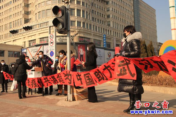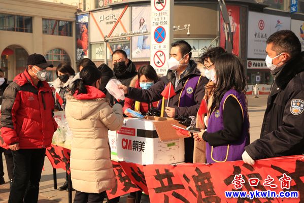 1月31 日上午,營(yíng)口百年董氏生物科技有限公司員工及志愿者在營(yíng)口大商新瑪特商場(chǎng)門前的空地上,向過往的市民免費(fèi)發(fā)放N95口罩及84消毒液。