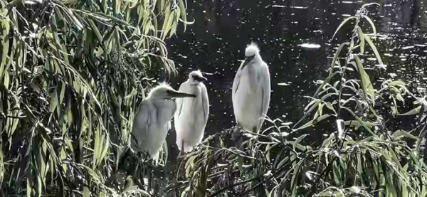初夏時(shí)節(jié),攝友邀我駕車(chē)來(lái)這里"開(kāi)開(kāi)眼",一下車(chē),真的令我失聲驚愕:好一片茂密的林帶,競(jìng)仿佛使人置身于西雙版納原始森林的一角!我們?cè)邙B(niǎo)蟲(chóng)的鳴唱聲中闖進(jìn)林帶,艱難地在過(guò)人高的藤草中探索前行,終于找到了一個(gè)適合拍攝的平臺(tái),拿出手機(jī)開(kāi)拍,于是在這個(gè)詩(shī)意的綠色的午后,這個(gè)與我們有緣的白鷺家族便永遠(yuǎn)歡樂(lè)地留在了我的鏡頭中……