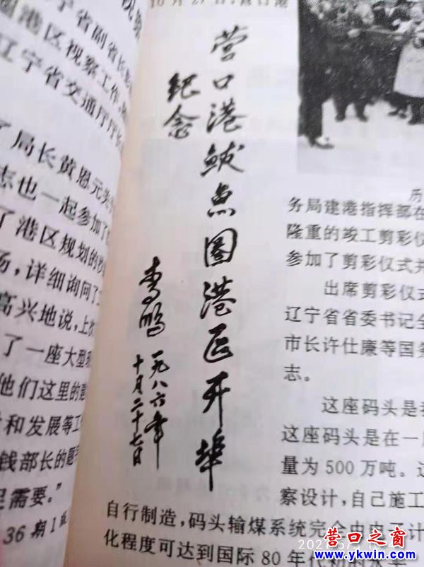 時任國務(wù)院副總理李鵬為鲅魚圈港區(qū)題詞