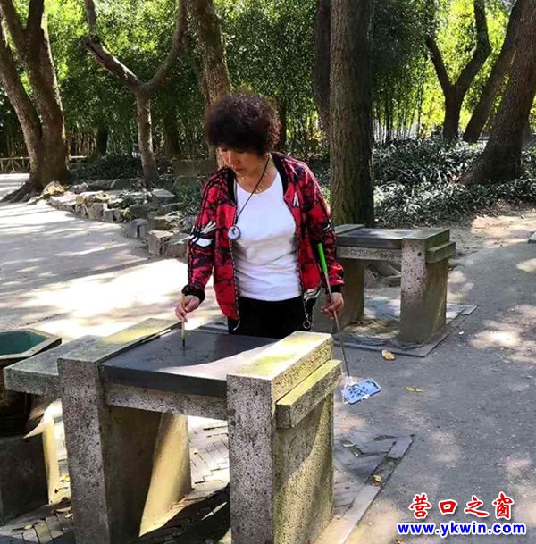 每逢周末,關(guān)素華和家人都陪著陪八十多歲的婆母在鲅魚圈本地或周邊的景點(diǎn)游玩。圖為關(guān)素華陪著婆母在青龍山公園的一張照片